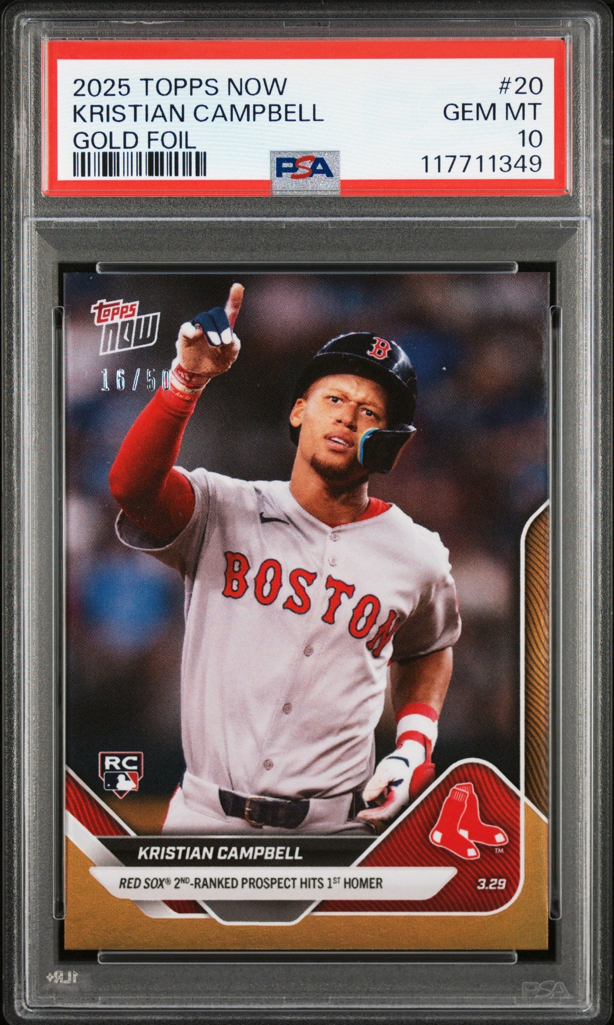 Graded 2025 Topps Now Kristian Campbell #20 Gold Foil /50 Rookie RC Baseball Card PSA 10 Gem Mint (ONLINE ORDER ONLY)