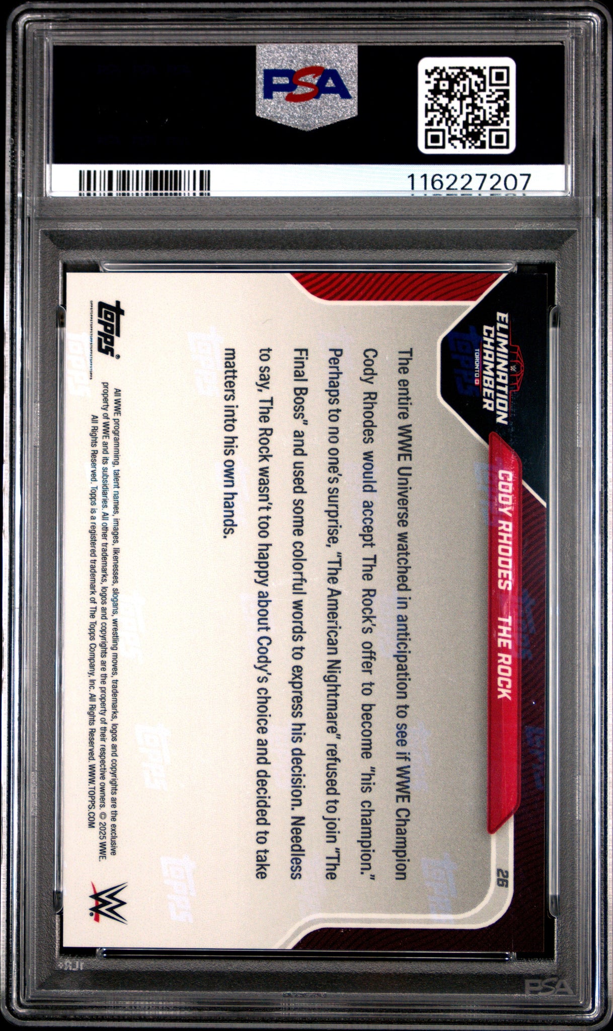 Graded 2025 Topps Now WWE Cody Rhodes/The Rock #26 Wrestling Card PSA 10 Gem Mint (ONLINE ORDER ONLY)