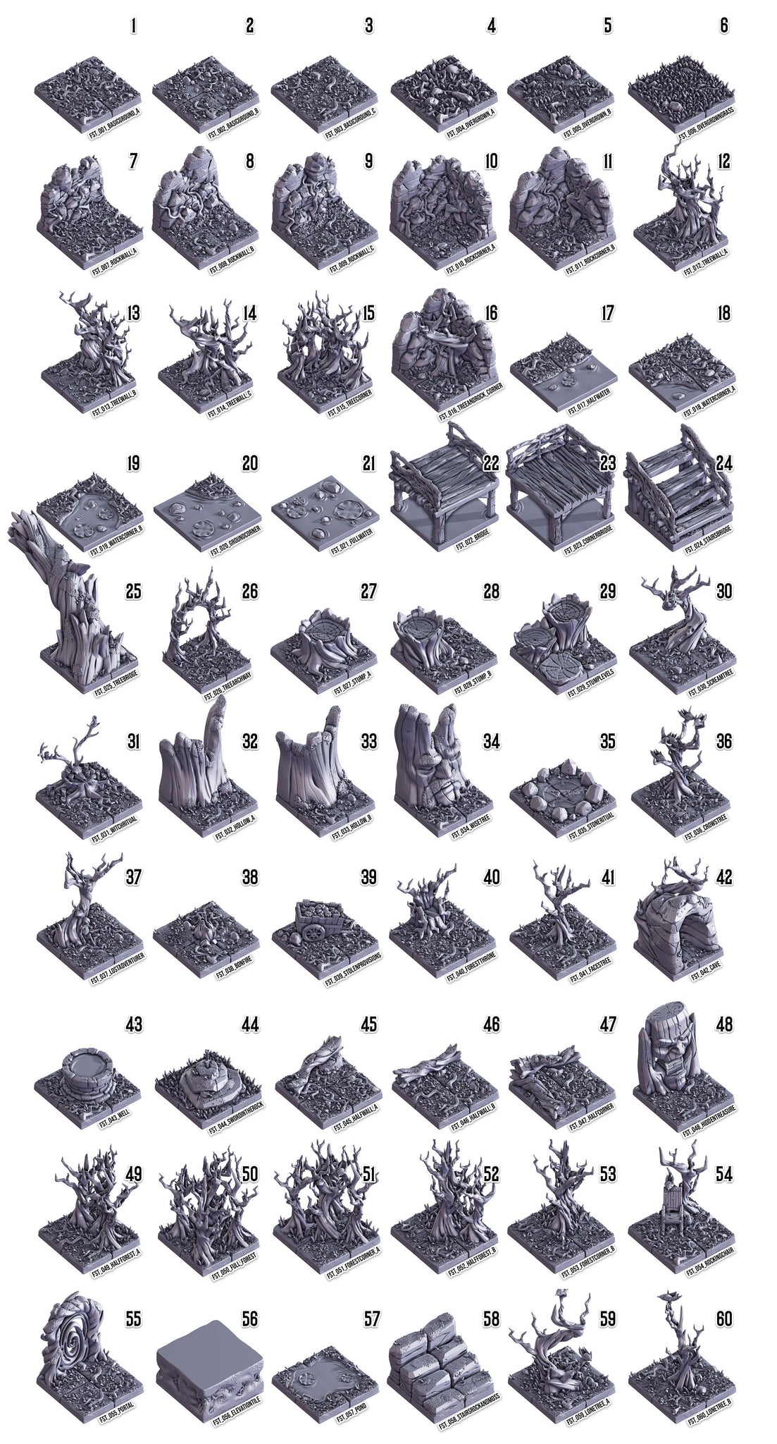 3D Printed Cast n Play Death x Tiles - Forest Set 28mm 32mm D&D (Online Only)