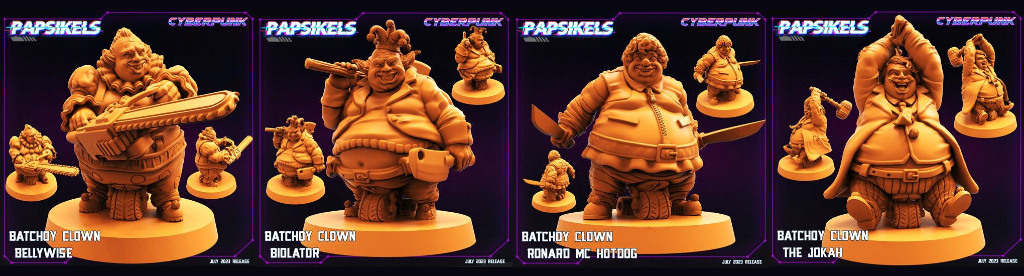 3D Printed Papsikels July 2023 - Cyberpunk Batchoy Clown Set 28mm 32mm (Online Only)