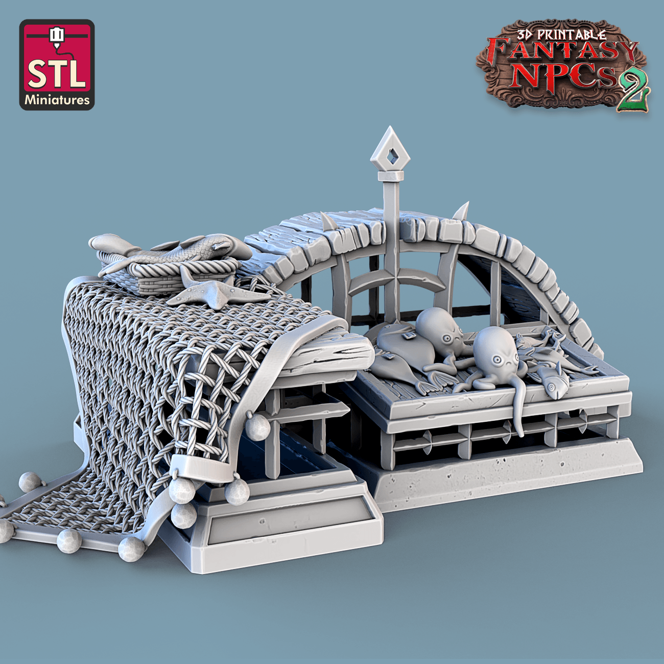 STL Miniatures Fantasy NPC 2 Fish Vendor Set