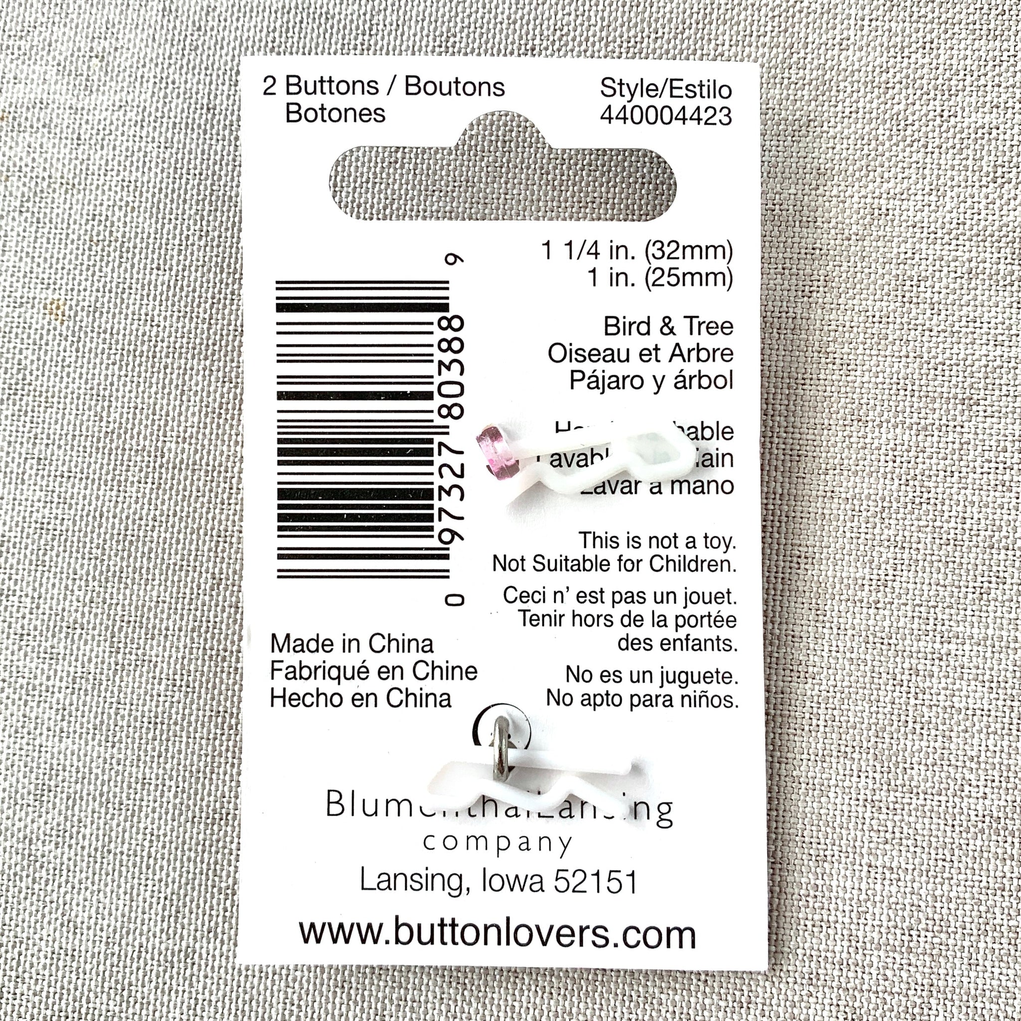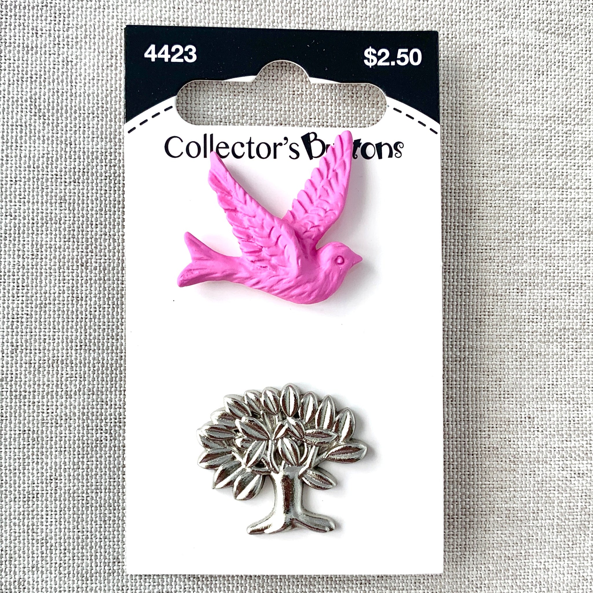 4423 Bird and Tree - Collectors Buttons - 1 Hole Shank Buttons - 25mm 32mm - Pink Silver (ONLINE ORDER ONLY)