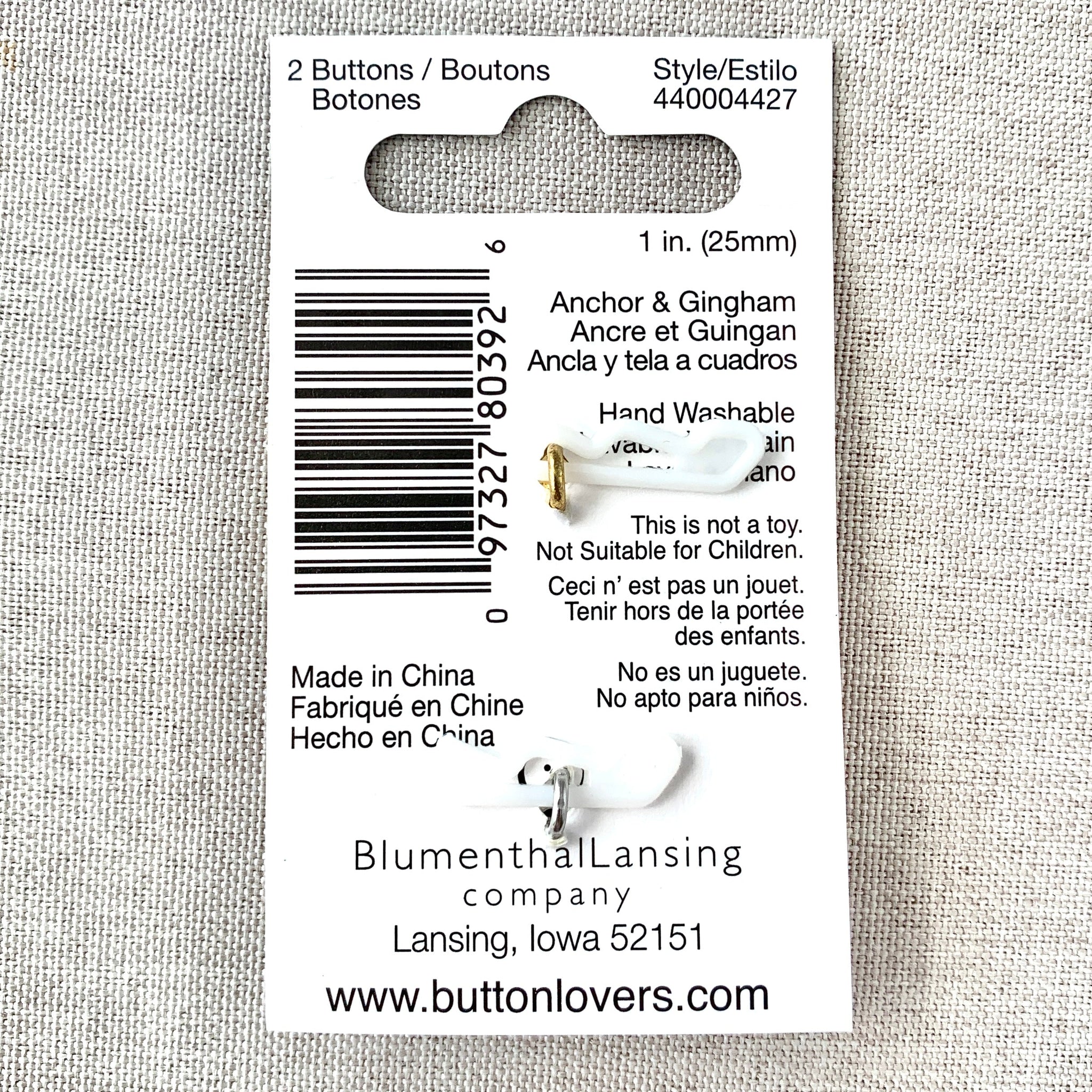 4427 Anchor and Gingham - Collectors Buttons - 1 Hole Shank Buttons - 25mm - Red Blue (ONLINE ORDER ONLY)