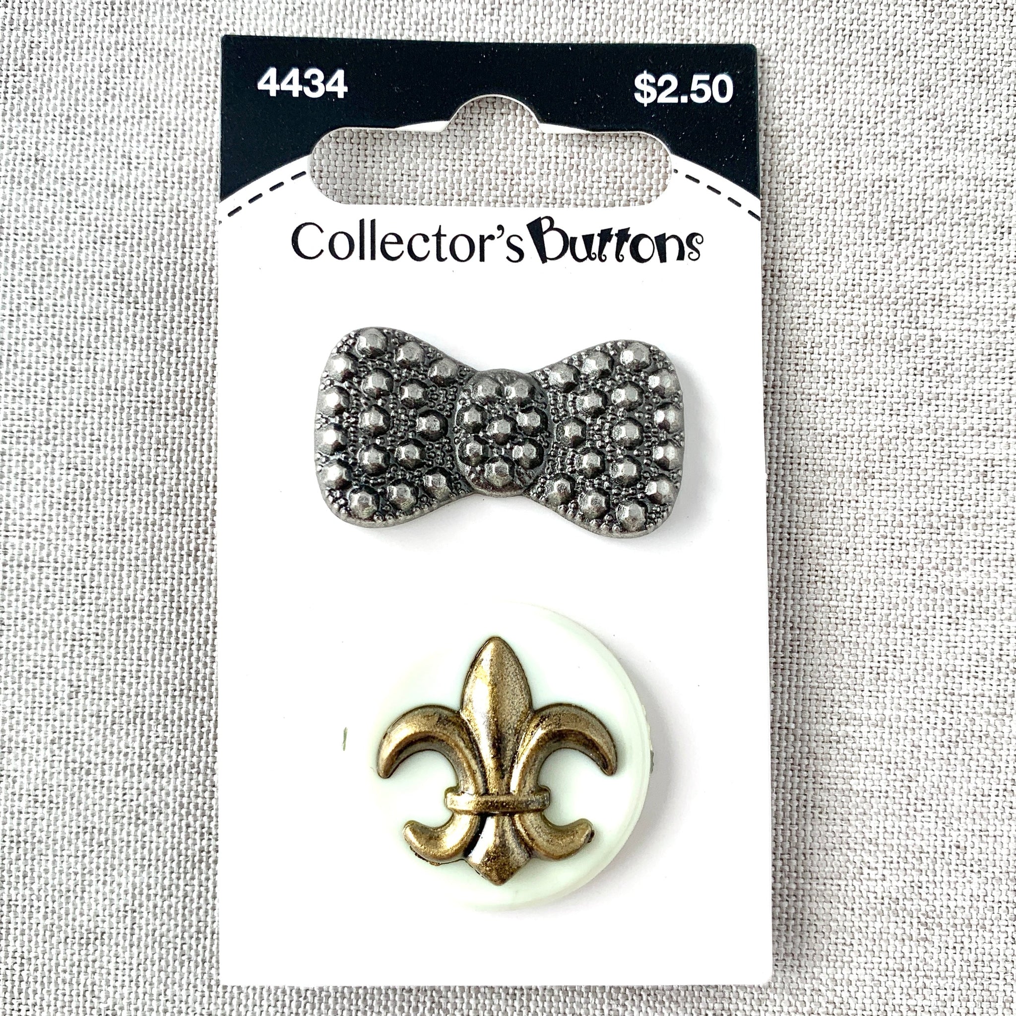 4434 Bow and Fleur de Lis - Collectors Buttons - 1 Hole Shank Buttons - Assorted Sizes - Silver Bronze (ONLINE ORDER ONLY)