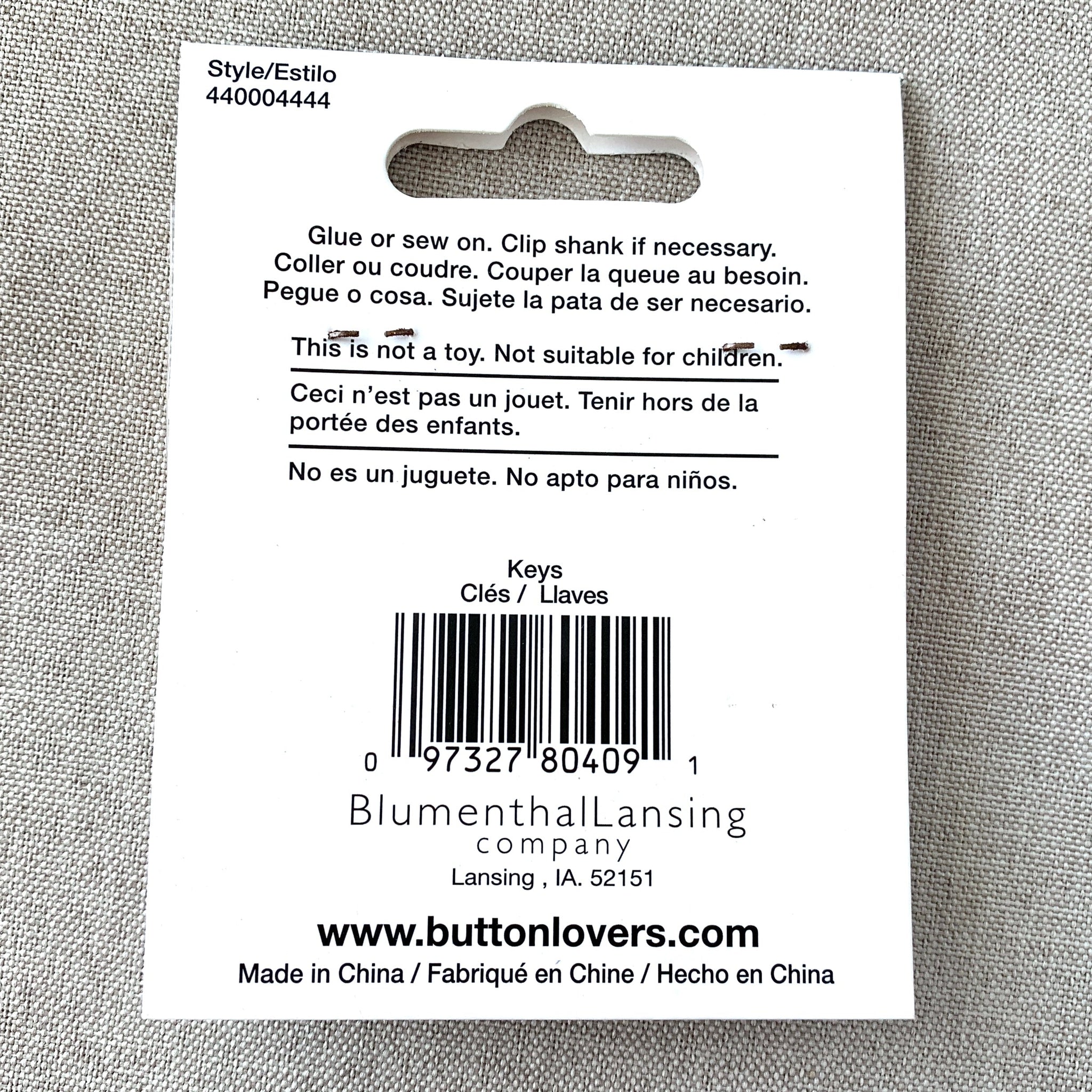 4444 Silver Key - Collectors Buttons - 1 Hole Shank Button - - Silver (ONLINE ORDER ONLY)