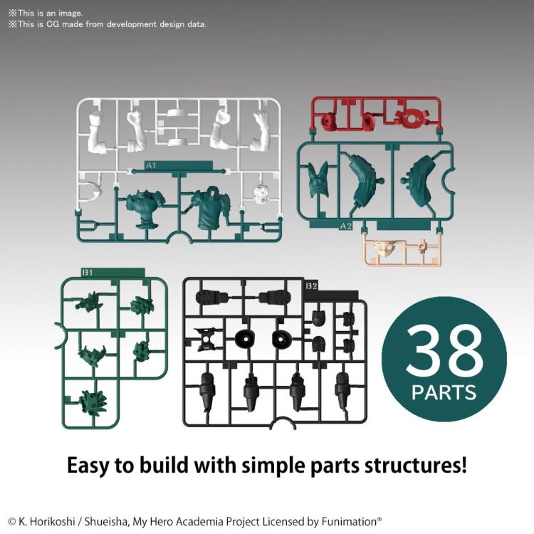 From the anime series My Hero Academia comes an easy-assemble model kit of Izuku Midoriya that requires no glue, no paint, or even tools to assemble! Parts twist off and snap together creating an amazingly detailed figure when assembled.