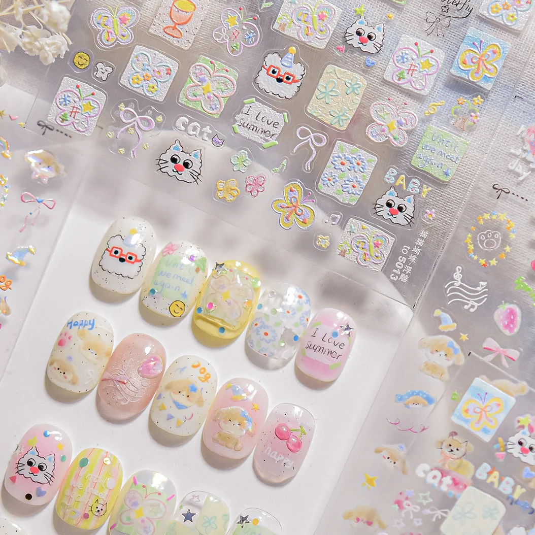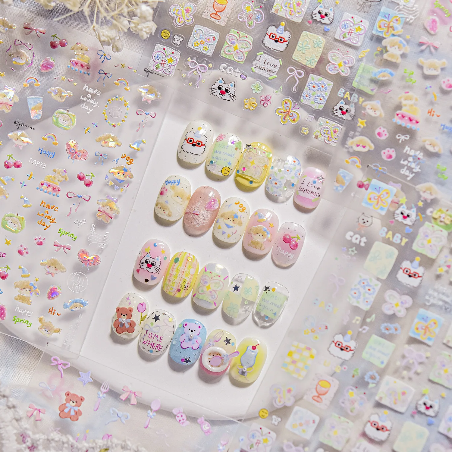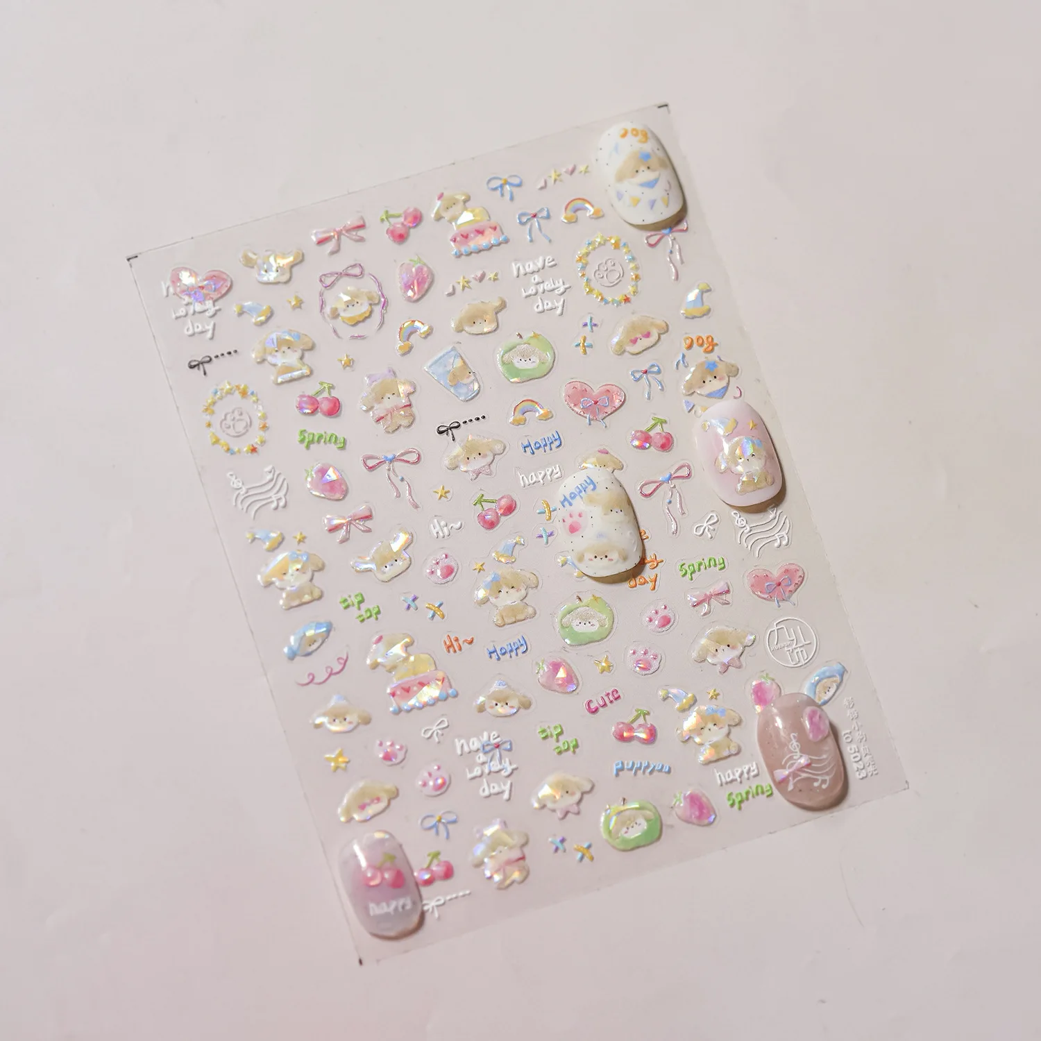 Small Animals Meeting Dog Cat Kitten Bowknot Cherry Butterfly Wreath Paw Star Hat Self Adhesive Nail Art Stickers Manicure Decal (ONLINE ORDER ONLY)