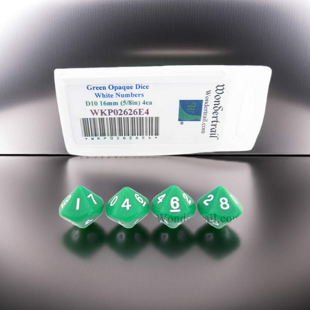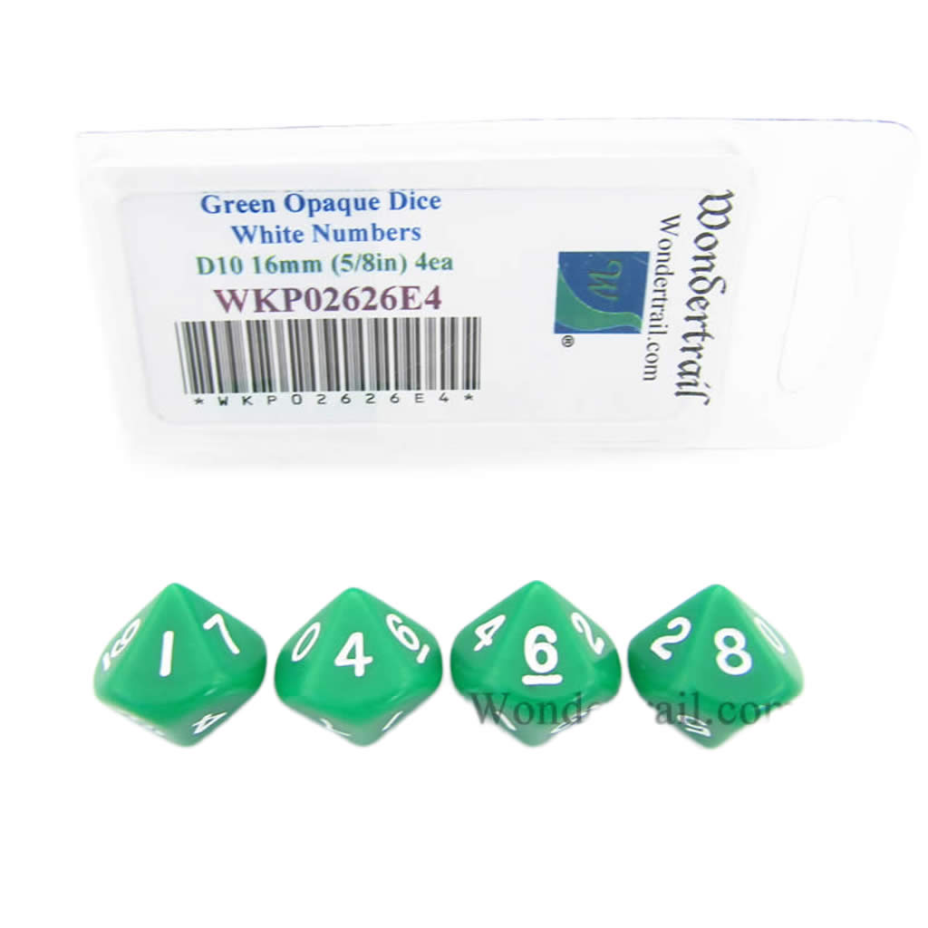 WKP02626E4 Green Opaque Dice with White Numbers D10 16mm (5/8in) Pack of 4 Dice Wondertrail